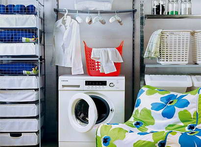 1、传统是将洗衣机放置在卫生间,空间有限的卫生间有很多不便;如果在阳台上打造一个这样既能洗衣又能熨衣晾衣服的空间,那么这样流线作业的空间不仅节省时间还能节省空间,让家便捷实用。