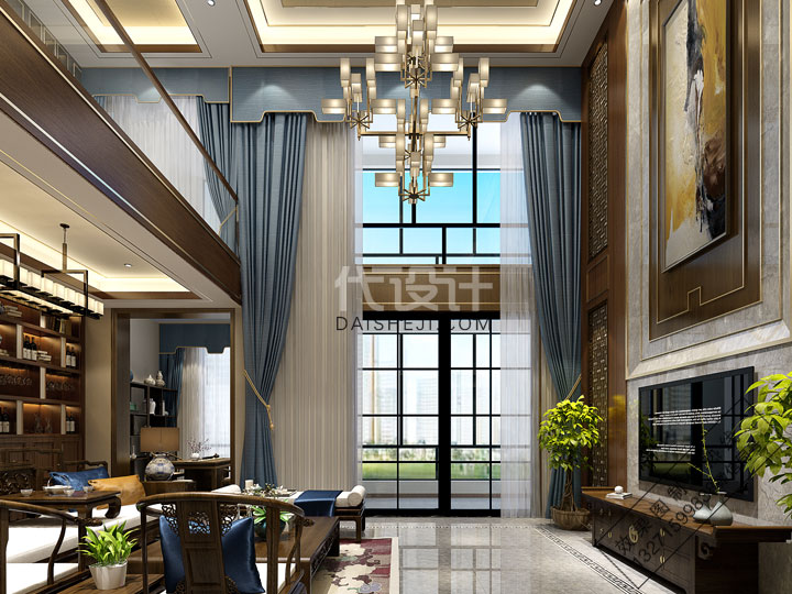 古色古香的中式空间又有浓厚的现代气息-别墅效果图设计