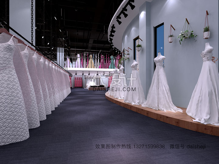 整体以重色调为主,看起来色彩明快、主体突出-婚纱店效果图设计