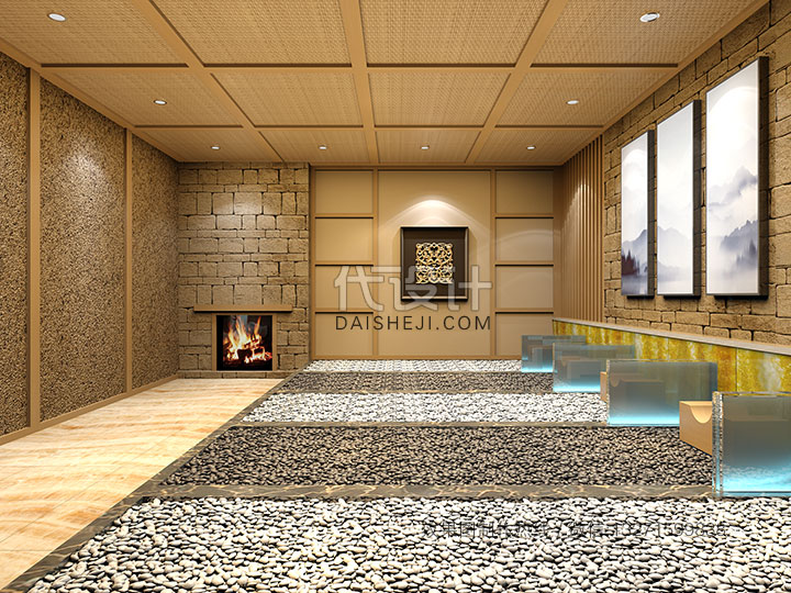 地面的小石子都使用了全模,增强了画面的真实感-汗蒸房效果图设计